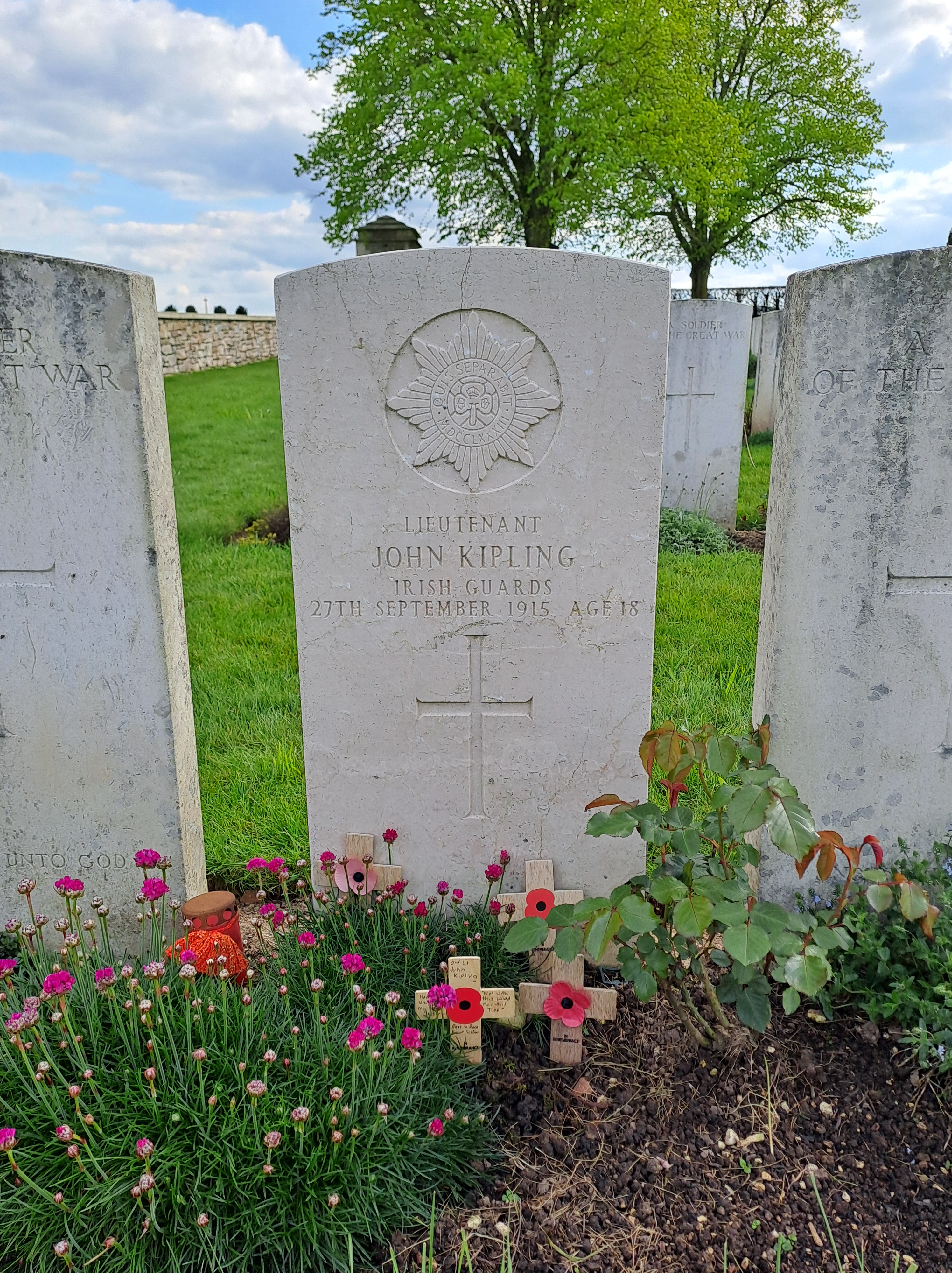 Another location that can be visited is the cluster of three cemeteries which all show different types of burial and commemoration – St Mary’s ADS, Bois Carré and Ninth Avenue. These three cemeteries are interesting as they all show different methods of burials from the war. The first is the location of an Advance Dressing Station called St Mary’s, which was set up during the battle and after the war, a cemetery was created there. This type of cemetery is a concentration cemetery – meaning that graves from across the battlefield were brought there later. The majority buried here are casualties from September and October 1915 but there are burials here from other times, most particularly Canadians killed in August 1917 whilst attacking Hill 70 nearby. There are over 1800 burials here, of which around 220 are identified. In this cemetery, is commemorated Lt Jack Kipling, the son of Rudyard. His identification in the 1990’s is potentially controversial, with some believing that it is not Jack buried in that grave. However, the evidence presented at the time was convincing enough for the authorities to accept that it was him. I will be writing a further blog post in the coming weeks about Jack, his life and his commemoration.